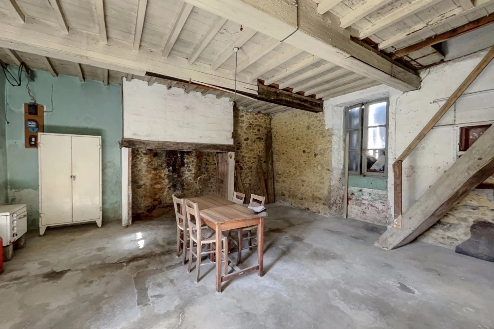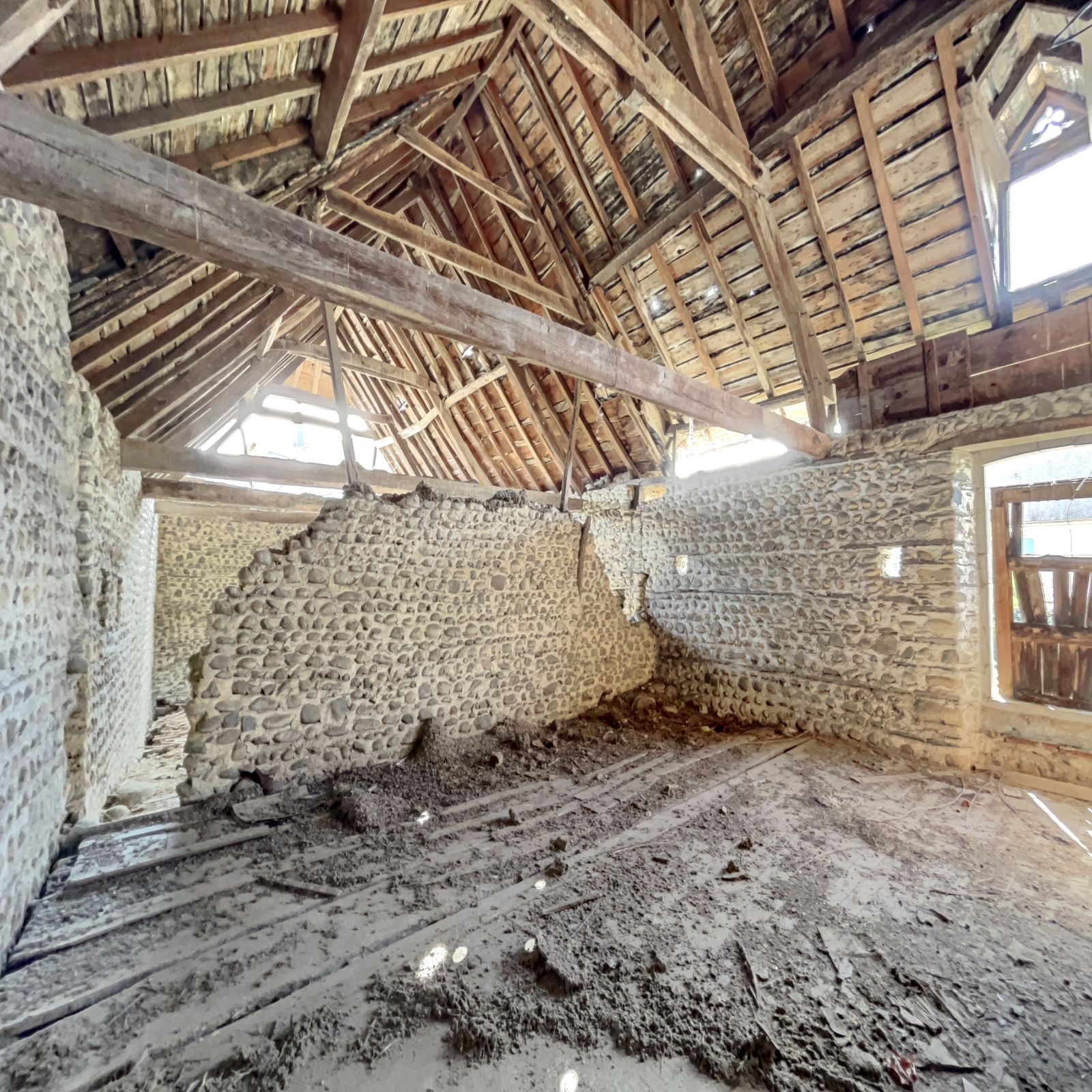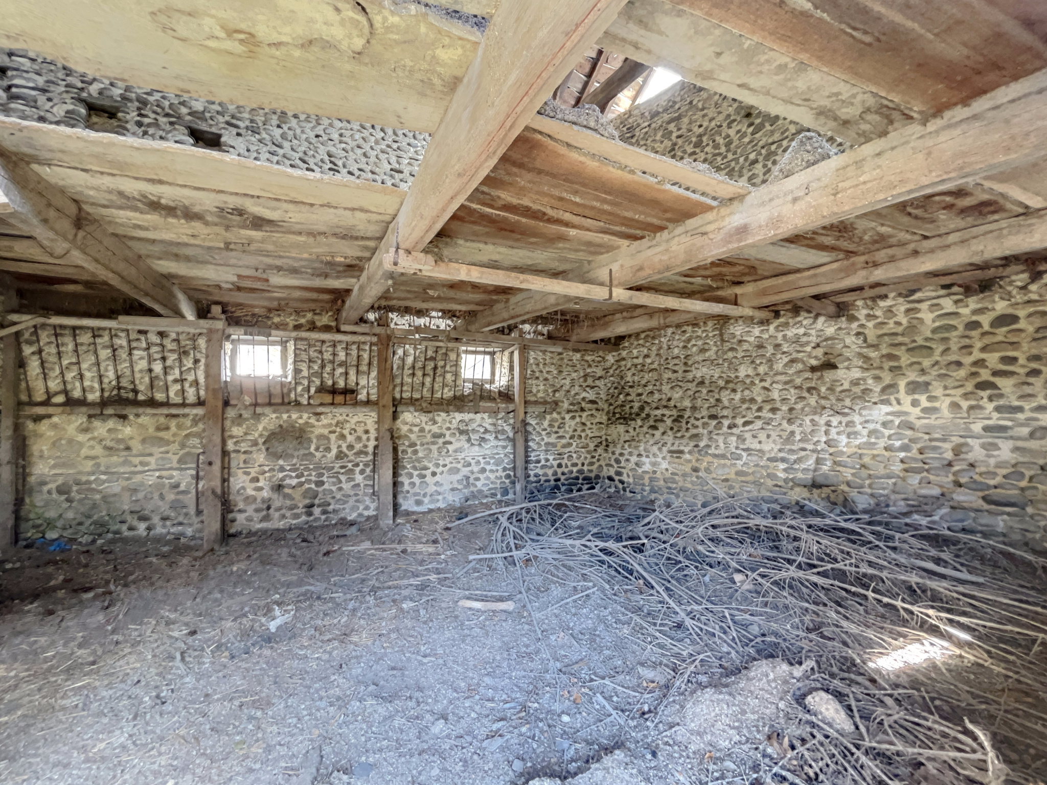 Une réhabilitation complète est nécessaire afin d'exploiter pleinement cette maison (toit, murs, création d'un assainissement, raccordement à l'eau et au chauffage, etc...).